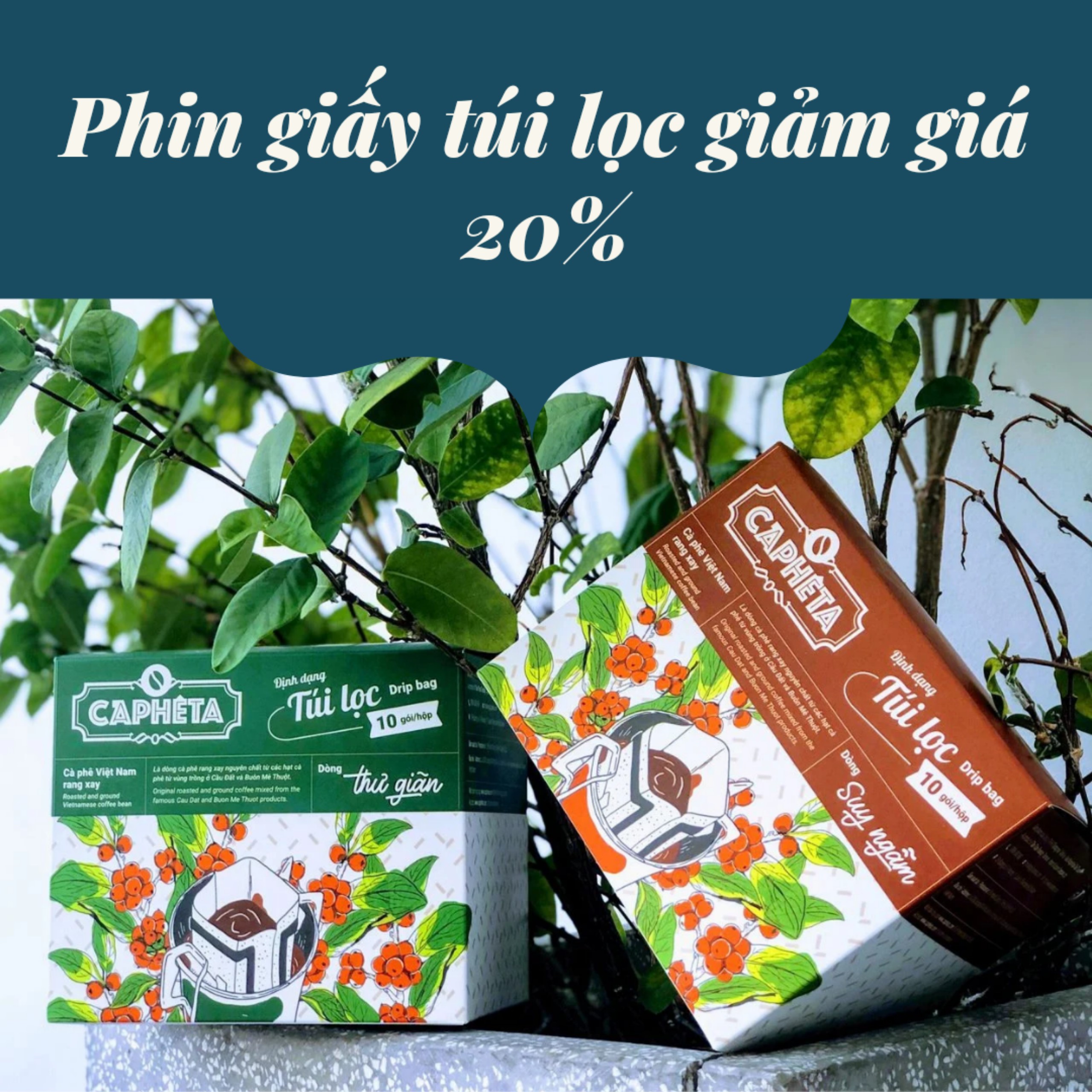 Capheta đang có chương trình giảm giá 20%, với chỉ 72.000 đồng cho một hộp 10 phin giấy túi lọc. Có thể mua sản phẩm tại: