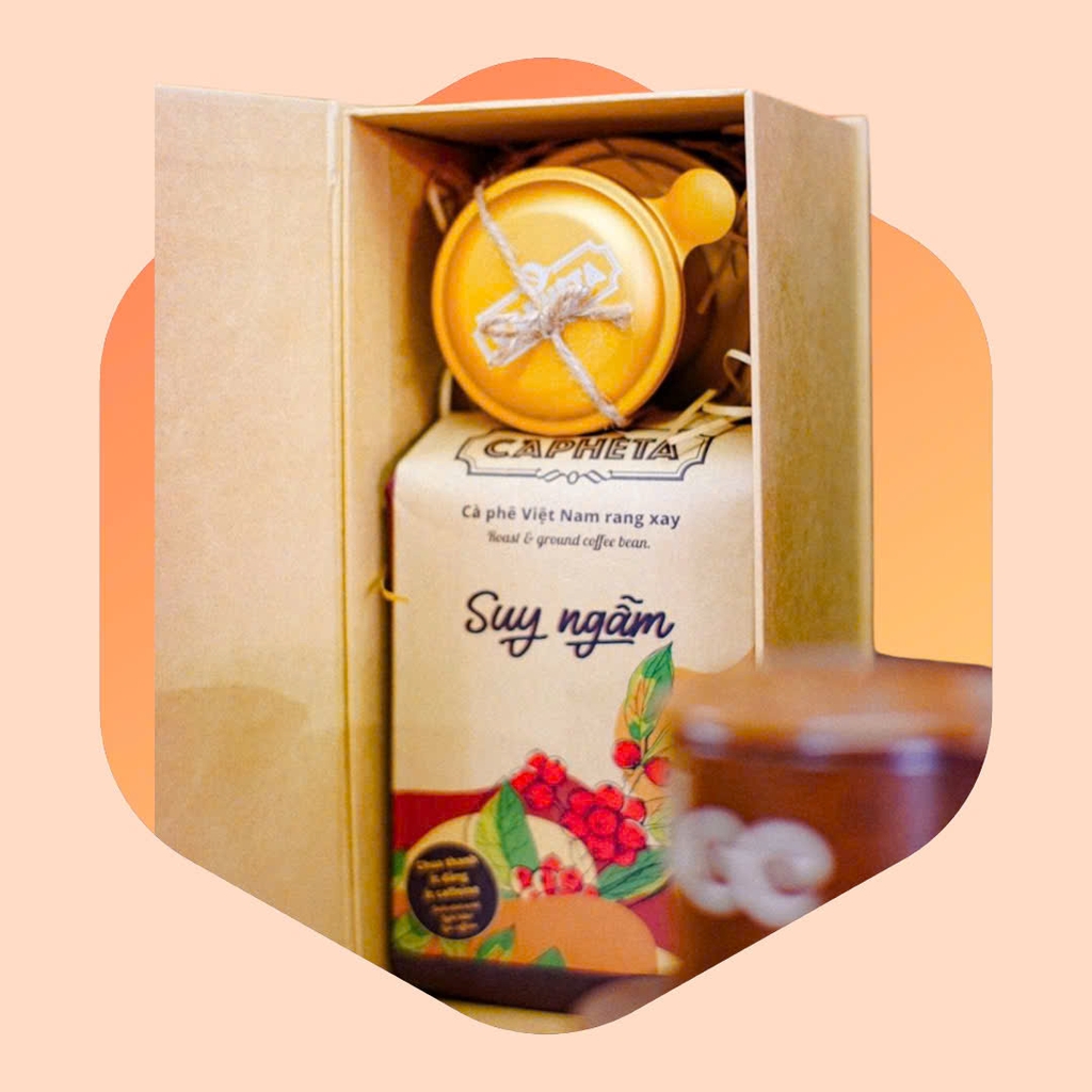Vậy nên, thay vì việc tự tay gói một món quà, người ta hay lựa chọn những hộp quà có sẵn dùng để tặng. Bởi vì nó mang đến sự tiện lợi và đẹp mắt. Hãy cùng nhìn qua hộp quà tặng của CAPHETA nhé.